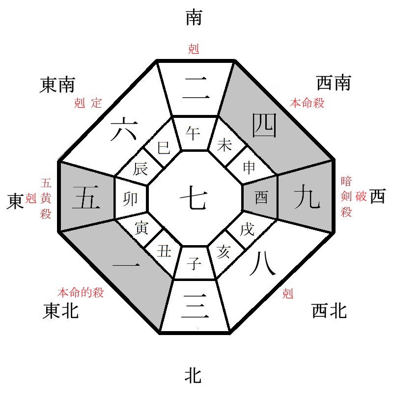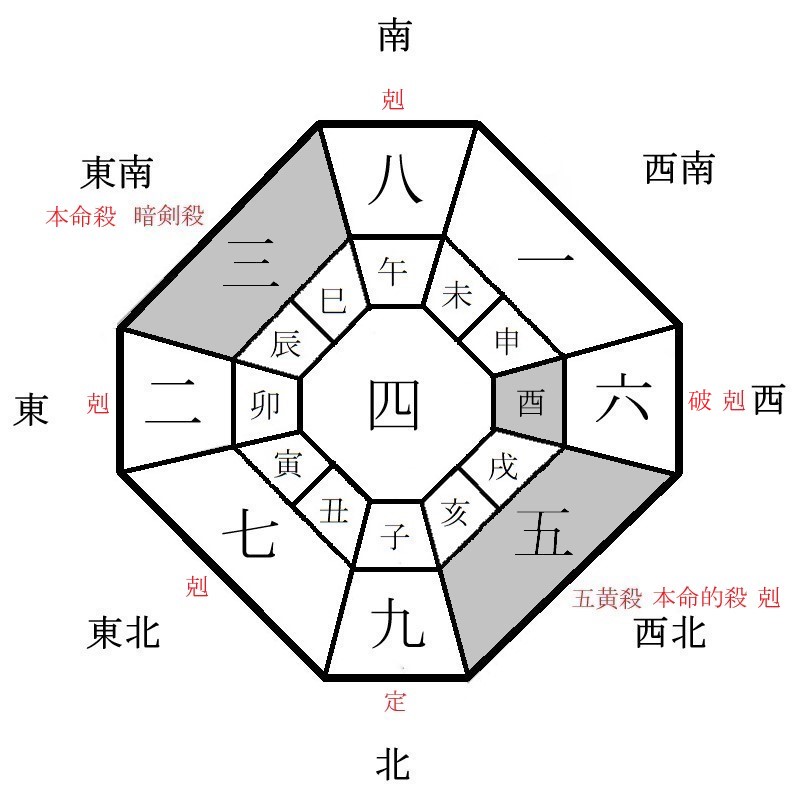 | 小凶(剋)方位 | 北西 南西 南東 |