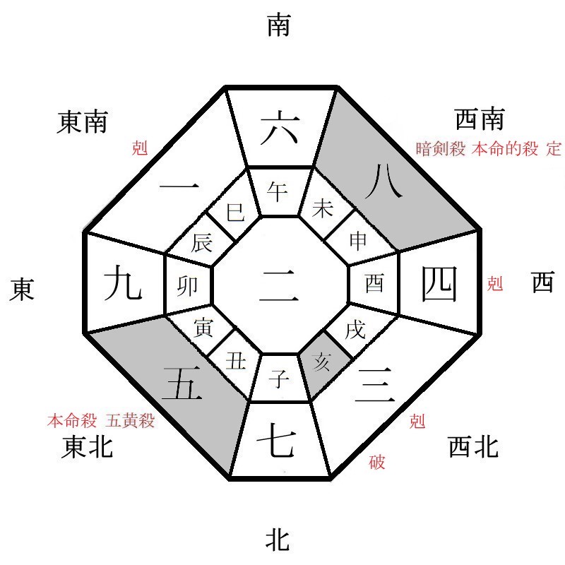 | 小凶(剋)方位 | 北東 南 北 南西 |